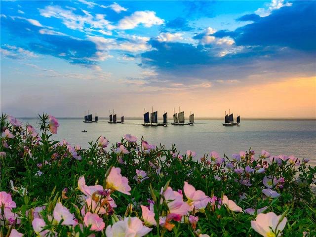 洪泽湖,位于江苏省西部淮河下游,古称富陵湖,两汉以后称破釜塘,隋称洪泽浦,唐代始名洪泽湖。洪泽湖水域面积随水位波动较大。在正常蓄水水位米时,面积约2069平方公里,容积约为31亿立方米,是中国第四大淡水湖。洪泽湖湖面辽阔,资源丰富,历史悠久,既是淮河流域大型水库、航运枢纽,又是渔业、特产品、禽畜产品的生产基地,素有“日出斗金”的美誉。