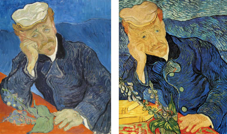 就是 在 自杀前一个月,为精心照顾他 的 加歇医生画了 这幅肖像。一张收藏于 巴黎奥赛博物馆,一张则在 创下梵高个人拍卖纪录之后,消失人间。梵高死时,加歇医生守在病床边,为他画了一张瞑目的遗像,也算对他特别的报答。