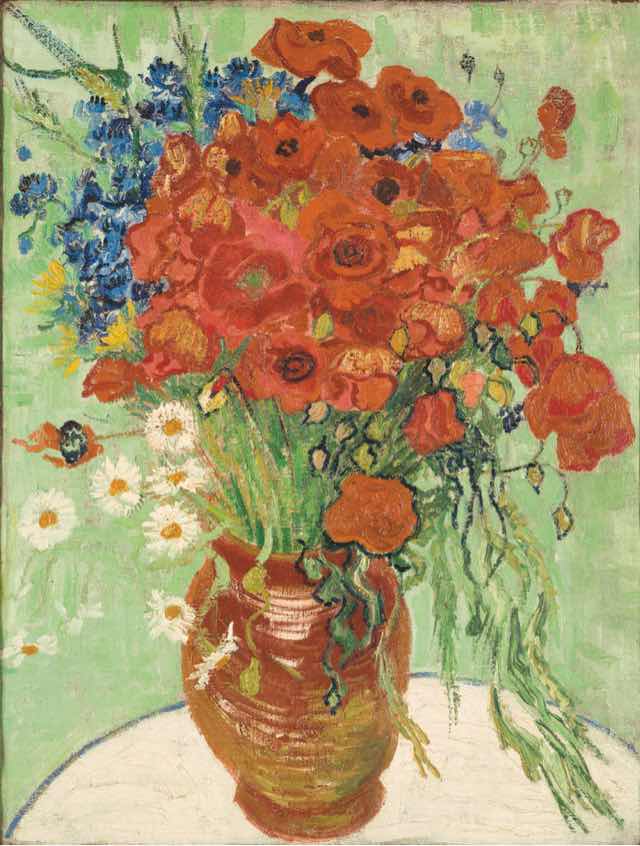 罂粟花》拥有 无拘无束和 狂热的 力量,画中的 花就来自几星期后他 企图自尽的 那片田野。这幅作品于 保罗·加歇医生家中完成,他 借鲜艳的 野花表达自己当时的 精神状况正是 其标志性创作手法。罂粟花就像一团炽热燃烧的 火焰,梵高将饱受折磨的 人生痛苦转化成醉人的 美丽。在