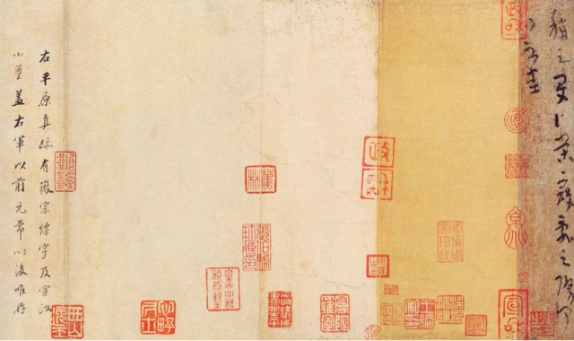 西晋陆机的《平复帖》是故宫法帖的代表作品,也是目前存世最早的名人墨迹之一(笔者注:),内容为陆机向朋友问候疾病的书札。《平复帖》本为清宫旧藏,嘉庆帝将其当作珍玩稀品赏给亲王,遂流出内府。民国期间,为恭亲王后人珍藏。1937年,为了给母亲治病筹措费用,恭亲王后人意欲出卖,几经转手落入英国。张伯驹以4万大洋购入,并将自己的书房命名为“平复堂”。不料日寇大举侵华,张伯驹携家人避祸到陕西,随身将《平复帖》缝入随身衣被,从而使文物得以保全。