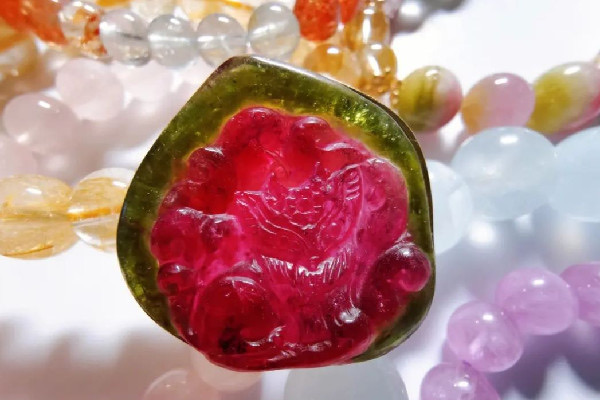 红色碧玺是碧玺中价值最高的,色如u>虾焐⒚倒搴焐罴眩缟钤蛴殖ldquo;双桃红”,色浅称“单桃红”或“孩儿面”,优质者如同红宝石,其次蓝色碧玺由于较为罕见,现已成为碧玺中价值最高的色种。除此之外,碧玺中非常稀有的西瓜碧玺,中间为粉红色,边缘为绿色,酷似西瓜而得名,是如今国际交易市场上难得的宠儿。