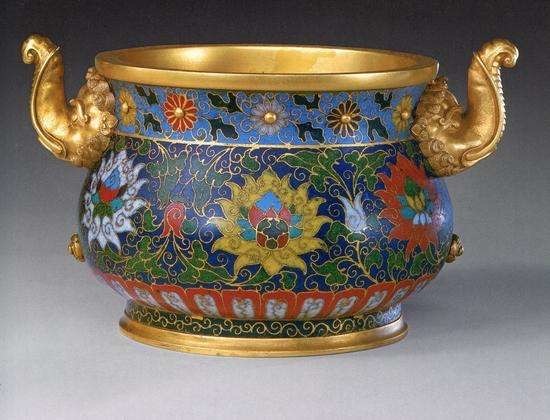 故宫博物院藏掐丝珐琅缠枝莲纹象耳炉